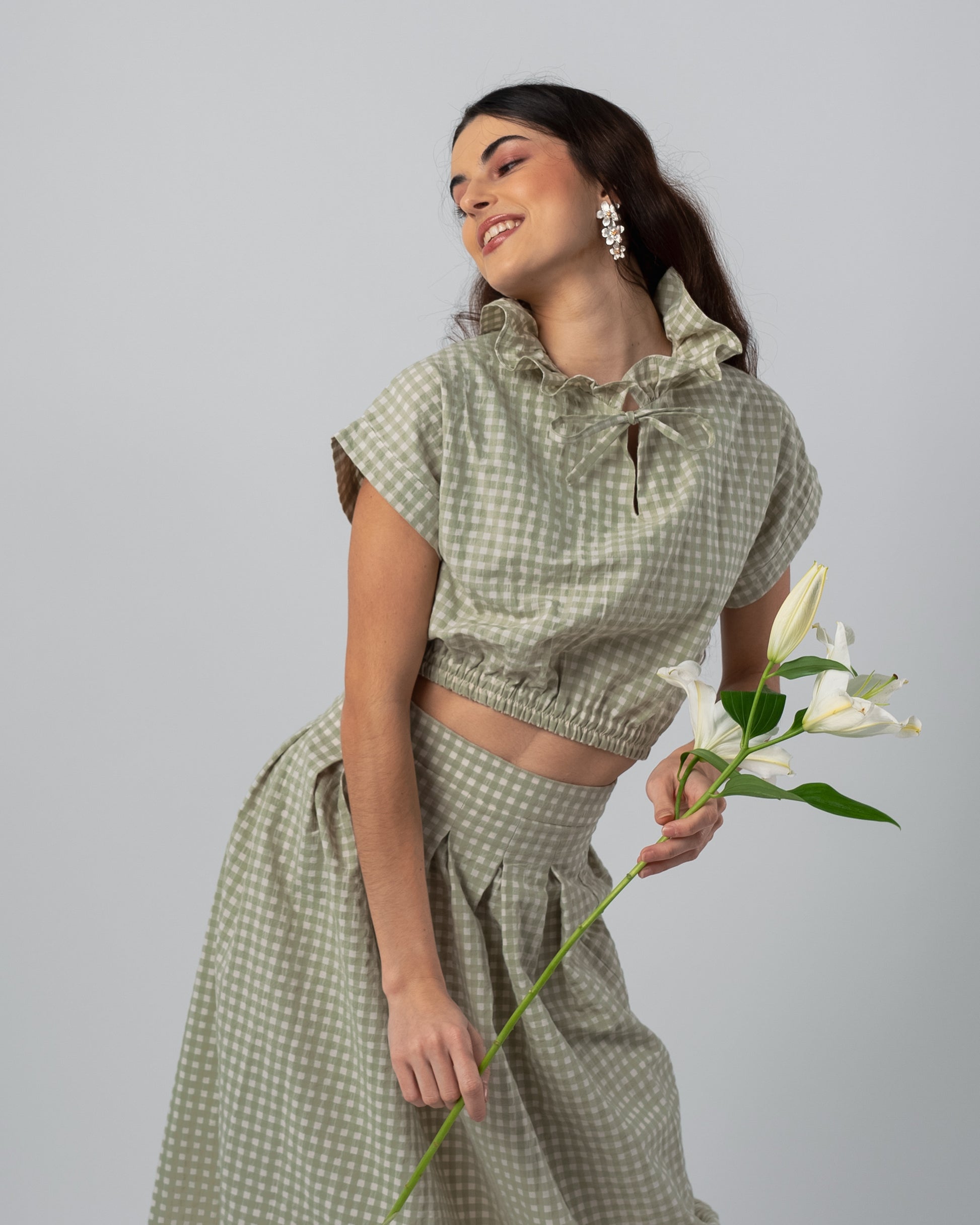 CONJUNTO DE FALDA Y TOP VICHY ROMANCE VERDE