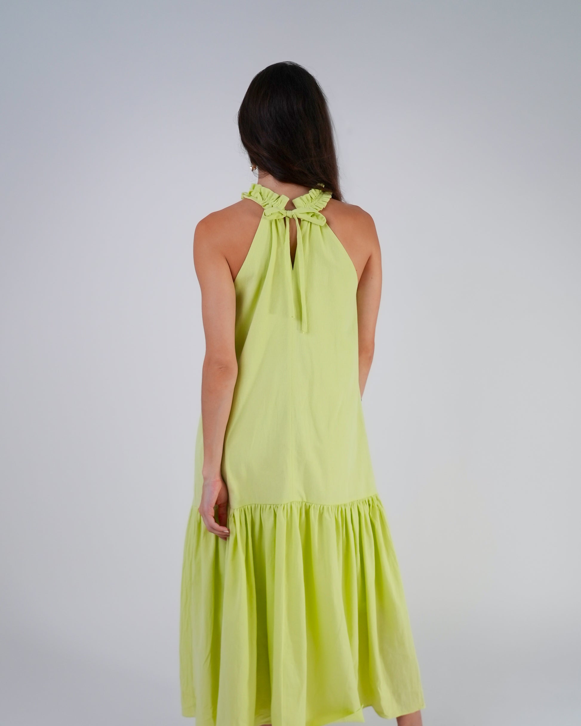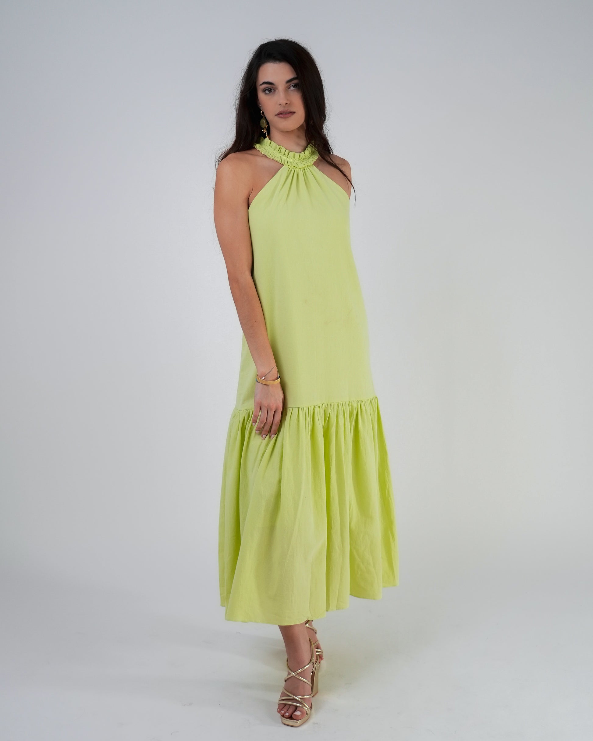 Vestido mimosa — algodón rústico, color lima